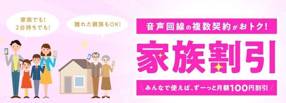 家族割引で毎月ずっと1回線につき100円安くなる!
