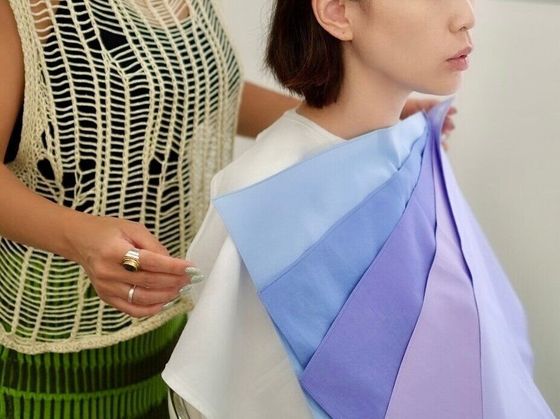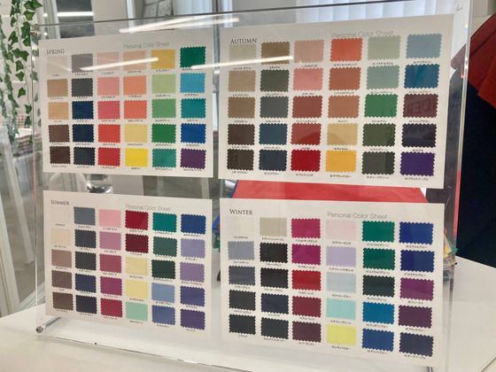 パーソナルカラー診断は、実際にドレープを肩にあて、プロフェッショナルが1枚ずつ見極めていくため、自分の先入観なしに似合う色を拾っていきます。