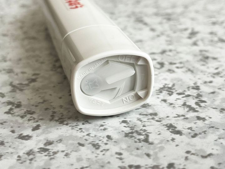 電源のON・OFFは、ハブラシ下部のツマミで行います。ツマミは大きめなので、子どもが自分で切り替えできました。