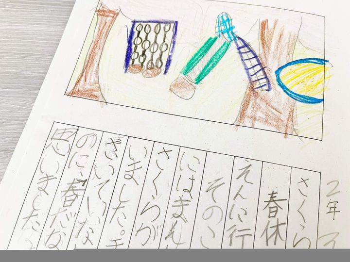 シンプルな色づかいの絵本の方が、子どもの字が引き立ちます。背景色も、白に近い色がおすすめです。