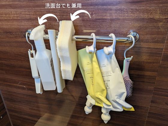 たいていは水でこするだけで十分だけれど、洗剤が欲しい時は、これまたお風呂用の無印良品『お風呂用 泡クリーナー(¥499)』を。水回りで汚れの種類も似ているから、モノと収納を増やさなくて済む兼用スタイルが、わが家にはぴったりです。