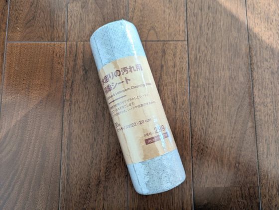 重宝しているのが、無印良品の『水回りの汚れ用 掃除シート(30枚299円)』です。食器用とシンク用のスポンジは分けたいけれど、何個もスポンジを置く場所をつくったり管理したりがプチストレス。そんなわたしにぴったりでした。