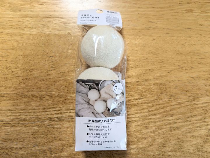 最近買ったのは、ニトリの『ウールドライボール 3P』(税込み 699円)。洗濯物と一緒に乾燥機に入れると、水分を吸収して乾燥時間を短くしてくれるアイテムです。実際に使ってみて、乾燥時間が30分ほど短くなった実感が。