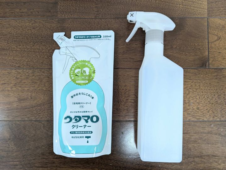 たわしで大まかな汚れを落とした後は、マイクロファイバークロスで両面を水拭きすればOK。汚れがひどい場合は、エアコン掃除と同じく「ウタマロクリーナー」を水に溶かして使うと効果的です。