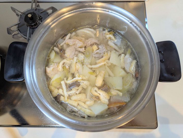 料理によって所要時間は変わりますが、5~15分ほど煮た後、鍋帽子をかぶせて30~60分おくだけで完成するものがほとんど。例えば、豚汁なら沸騰後5分煮てから30分保温。クリームシチューは9分煮た後、30分保温というぐあいです。