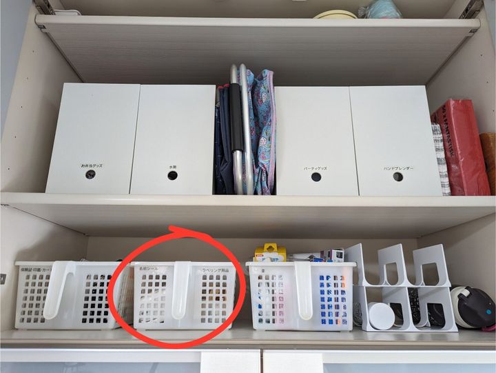 今はスペースを決めて、一定量をストックするように。食品や日用品の在庫を置いている棚の一部を廃材用にして、頻繁には出ないラップの芯や、いただきもののお菓子の箱などを中心に取っておくようにしています。