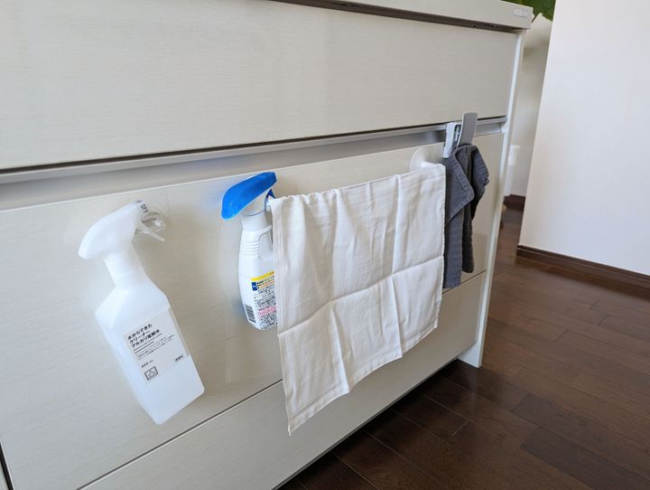 日々のお手入れは、使った後に広げて干しておいて、夕食後にふきん用石けんで手洗いするだけ。落ちない汚れが気になる時は、酸素系漂白剤でつけ置きを。この方法でニオイには悩まされずに済んでいます。