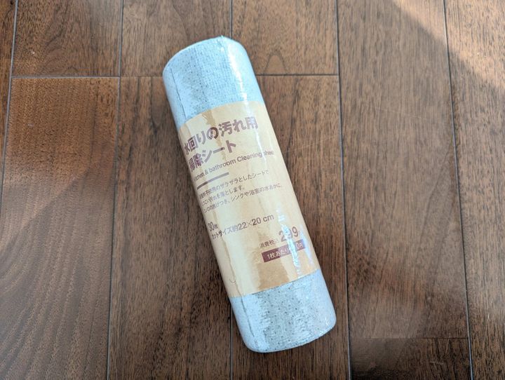 先にご紹介したパックスナチュロンのスポンジは食器に、『無印良品 水回りの汚れ用 掃除シート(税込み 299円/30枚』は、鍋やシンク、コンロまわりを洗うのに使っています。こちらも既に3ロールはリピートしているお気に入り。
