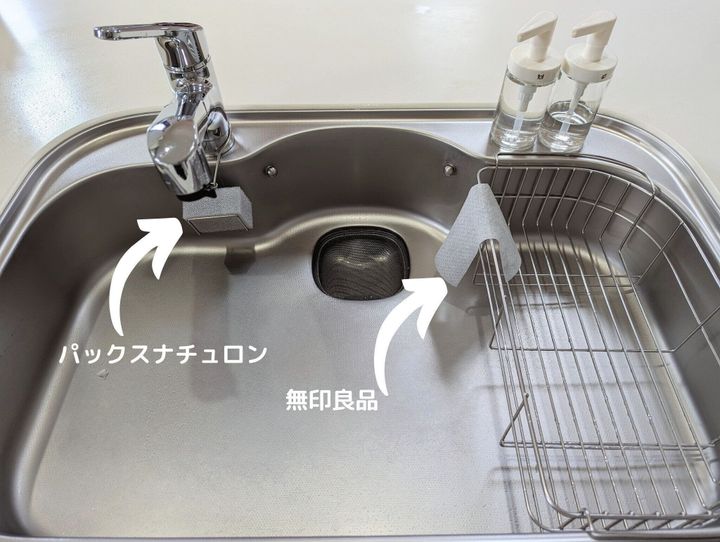 シート状でつまんで洗えるので、五徳や水栓の根元なんかの細かい部分にも使いやすいし、置く場所や管理の手間いらずなのも助かっています。