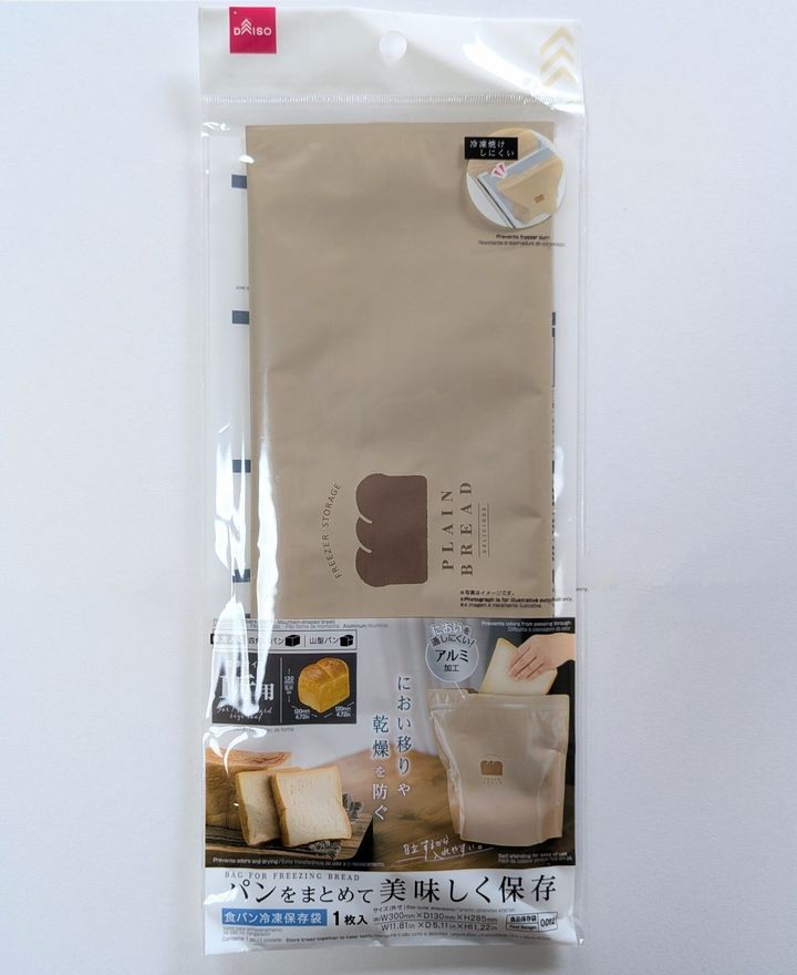 におい移りや乾燥を防いで、1斤の食パンをおいしく冷凍保存できるアイテムです(税込み 110円・JANコード:4550480340012)。洗って繰り返し使えるのも◎。