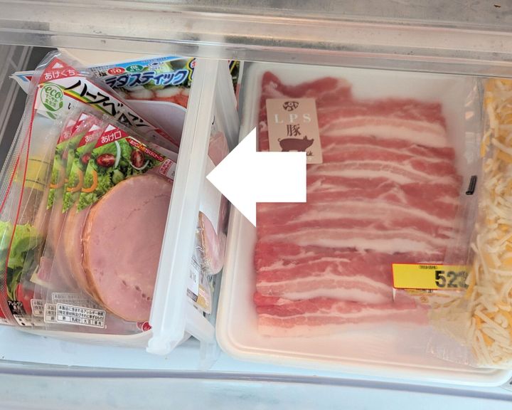 わが家ではハムやベーコンの出番が多いものの、1パックを一度に使い切れないこともしばしば。これまでは残りをジッパー付き保存袋に入れていましたが、ジッパーの開け閉めが地味に面倒なうえ、袋がふにゃっと折れ曲がって、チルド室で行方不明になりがちでした。