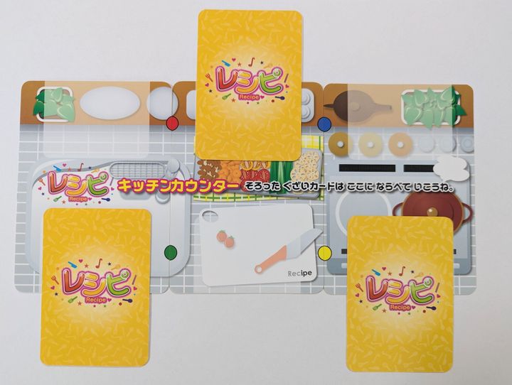 メーカーの推奨年齢は4歳~。カードでキッチンカウンターをつくって、そこに集めた具材カードを並べていく流れが「おままごと」感覚で、低学年くらいまでの子どもは特に喜ぶと思います。小2の次女は、自宅に数種類あるカードゲームの中でこれが一番のお気に入り。