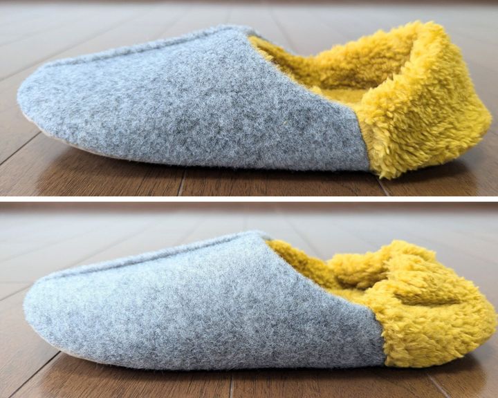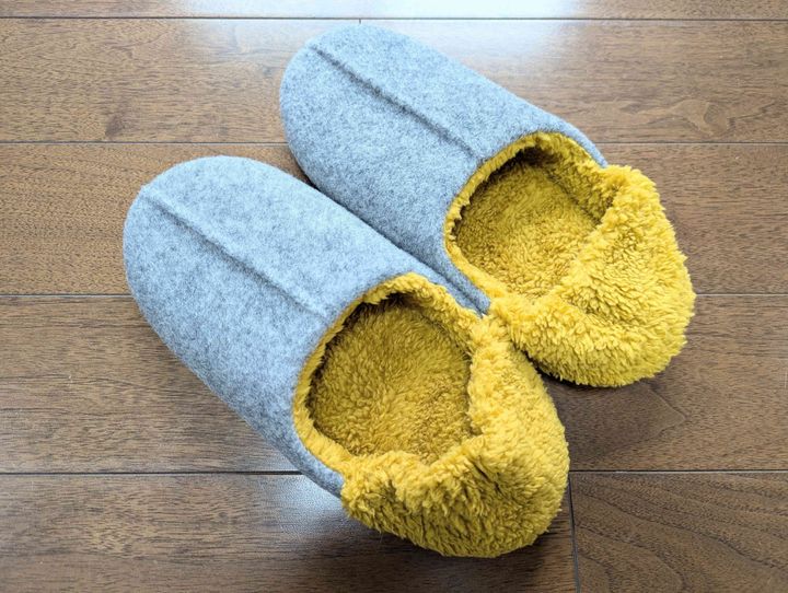 一般的なスリッパよりも柔らかくて薄手ですが、温かさは十分。軽くて足に馴染みやすいので、階段の上り下りでも脱げにくく、重さで足が疲れることもありません。足元の冷えを防いでくれる、わが家の定番アイテムです。