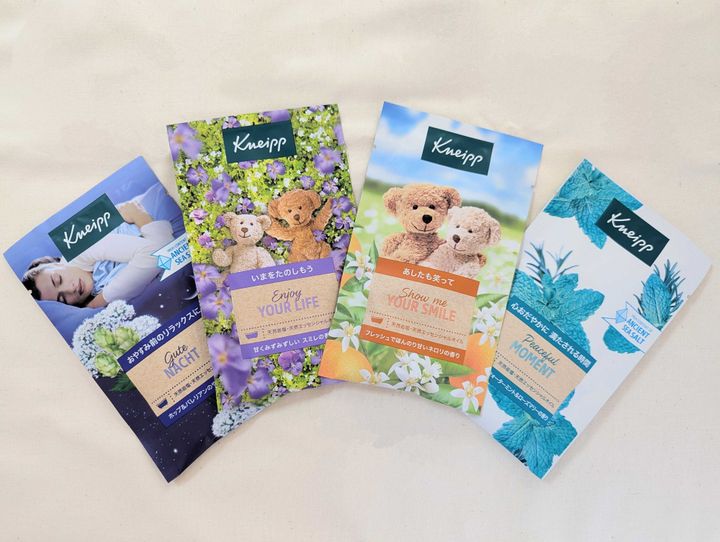 常時10種類以上のバリエーションがあり、季節限定品も登場するので、効能やカラーで組み合わせを考えるのも楽しいですよ。「いまをたのしもう」「あしたも笑って」「これまでも、これからも」など、ふっと心がゆるむパッケージのメッセージも◎。