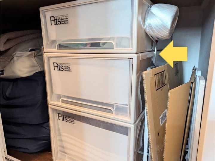 残り1本は、押し入れ内に常備。ビニールひもとセットで置いておき、資源ごみの回収日にダンボールをまとめるのに使います。億劫な家事も、必要な道具がすぐそばにあれば、とりかかる気になりやすいもの。