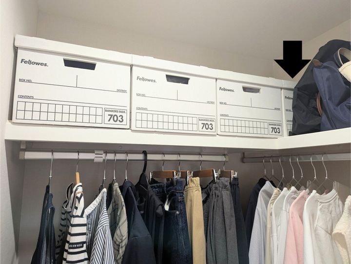 ここなら、ほかのモノの出し入れを邪魔せず、かといって奥に埋もれて忘れてしまうこともありません。思い出ボックスとして愛用しているのは、ミニマルなデザインで使いやすい、フェローズの「バンカーズボックス」です。