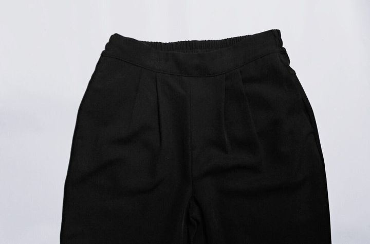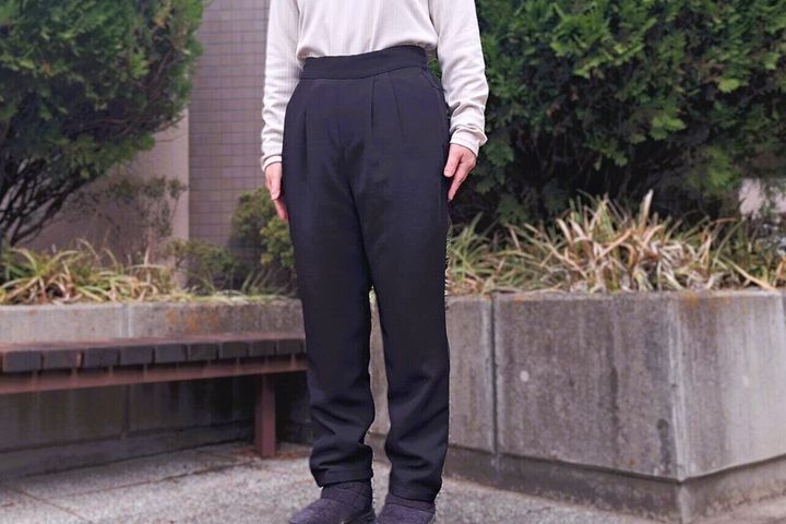 売場で最初見たとき、980円のパンツって大丈夫なの?とちょっと不安でした。けれど、生地をさわってみると、とてもサラサラで気持ちよくて、試着してみるとゆったりしてるのに、きれいなシルエットになるのが驚きました。