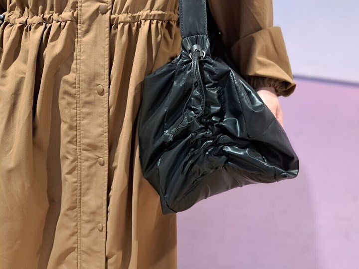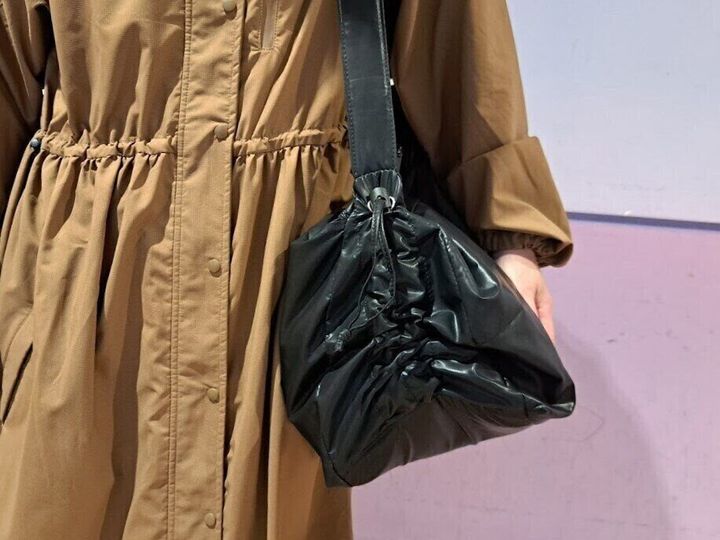 もちろん、そのままでも使い勝手はいいのですが、バッグのサイドには、シャーリング加工になっているので、ヒモで調節してみると、ボリュームあるふわふわな雰囲気のバッグにもでき、PUレザーが高級感を演出してくれるので、非常に高みえするコスパ最高のバッグです。