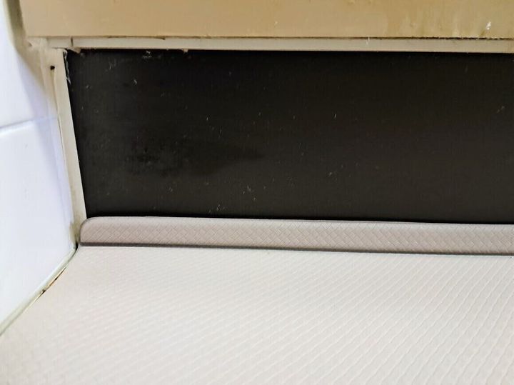 一般的なキッチンマットは、ペラっと敷くだけですが、これはしっかり立ち上がりがあってL字の折目がついています。