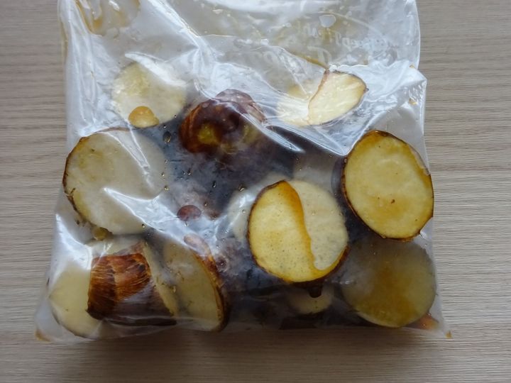 その後、保存袋などに入れて調味料を入れて下味をつけておきます。