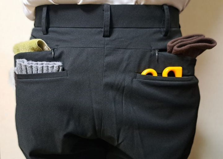 ウエストサイズも4センチずつ伸び、ポケットは前後で6個も!
