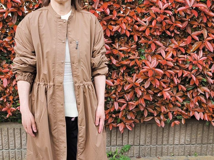 撥水やUV加工があるのでアウトドアでも活躍しますが、よそいきコーデでも問題なく、外出時に何を着よう?と悩む時間がもったいないので、そのときは即、この1着を手にして手抜きコーデしてます。