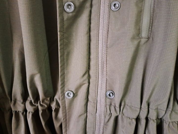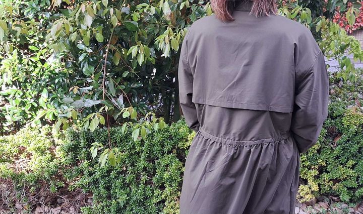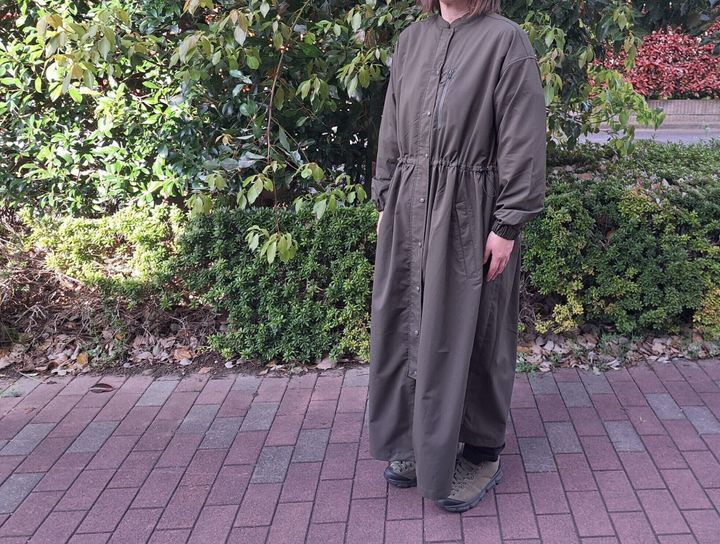 ウエストにあるスピンドル(ドローコード)で好みのウエストにできるので、ウエストをきつめに締めるとAラインのワンピースのようにも着こなせるので、いろいろ違った雰囲気を作り出せる1着なので、コスパいいかと思います。
