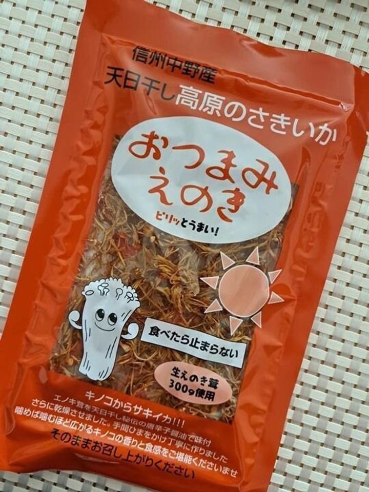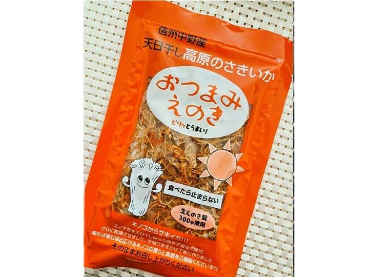 私は、必ず立ち寄り大量にお土産として購入するのですが、それは種類も豊富なのですが、価格も驚きの安さなのです。シーズンによって、キノコの種類は違うのでそのときある旬のキノコをぜひ手に取ってほしいのですが、日持ちを考えるとちょっとね!という方には、「おつまみえのき」をおすすめします。これなら日持ちもしますし、ちょっとしたおやつや、おつまみに最適で価格も400円ほどなので、配りもののお土産にもピッタリです。