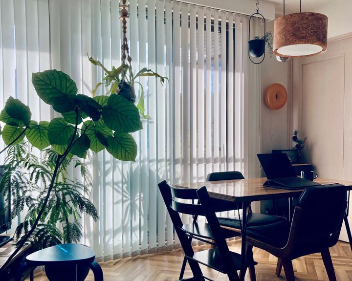 わが家では、スタイリッシュな雰囲気を目指すリビングにはバーチカルブラインドを選択し、