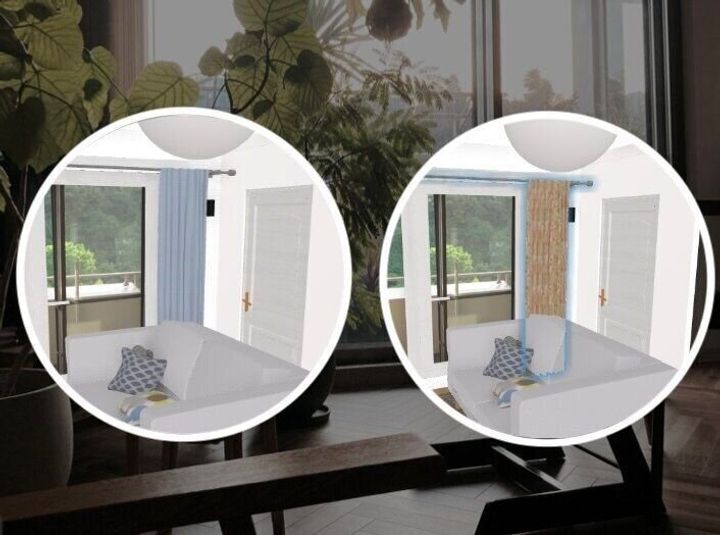 レールが変形している子ども部屋には、開閉しやすいカーテンを。