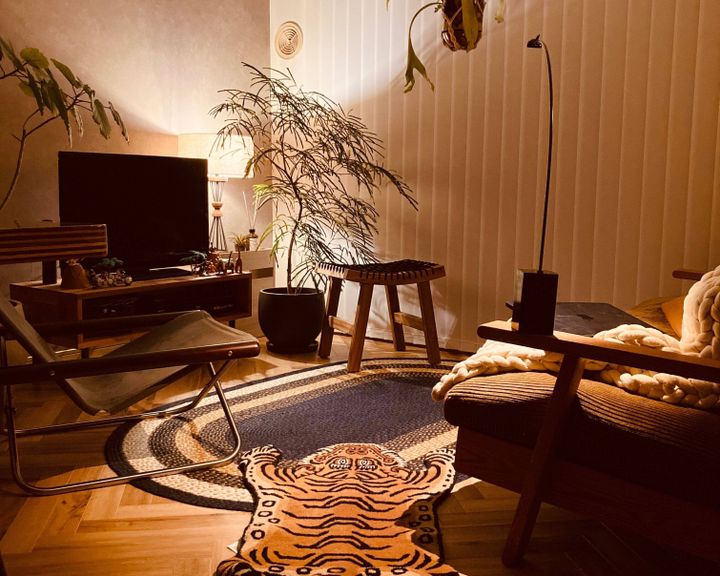 筆者の自宅は10畳ほどのリビング。決して広いとはいえない空間ですが、工夫次第で、圧迫感が生まれないような演出を心がけています。その一役を担うのが紛れもなく照明です。