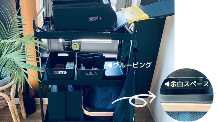 スタイリッシュな見た目に、視認性も高く機能的なワゴン。しかし置き方を誤ると、たちまちモノが山積み状態になり、丸見えになってしまう難点があります。