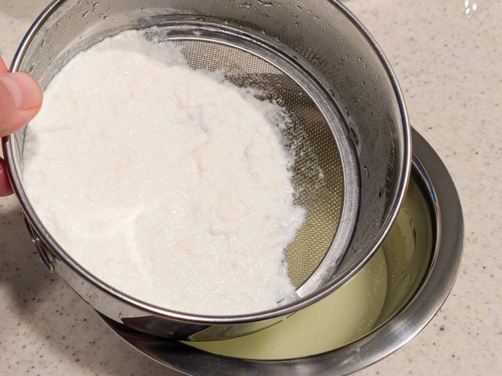 残った透明な液体はホエイです。