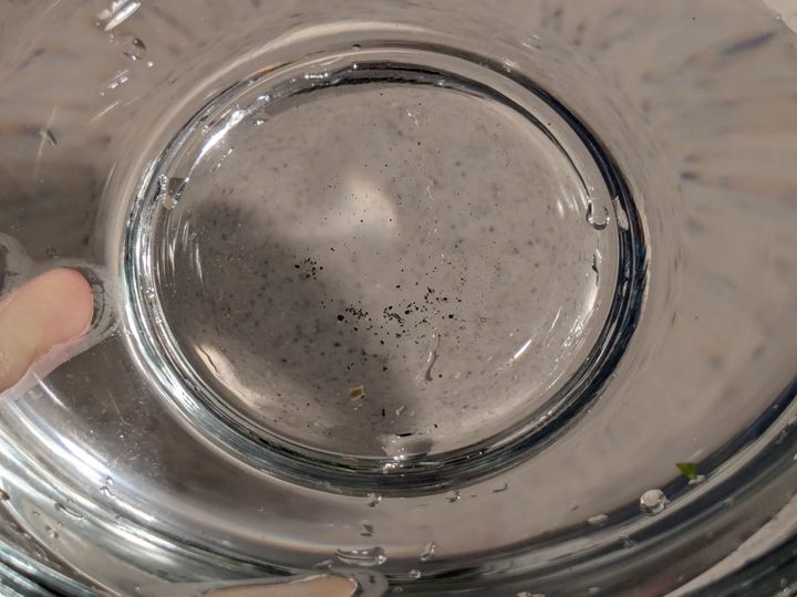 ボウルの底には砂がたまり、しっかりと汚れを落とせたことがわかります。