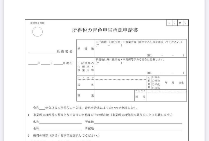 青色申告を希望する場合は青色申告承認申請書を税務署に提出します。