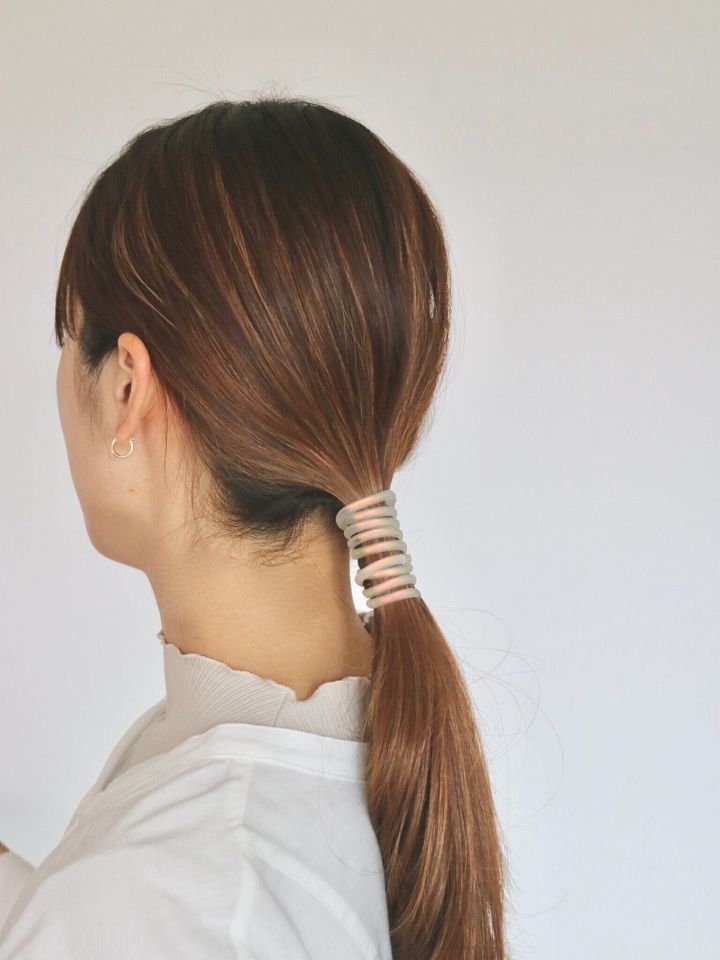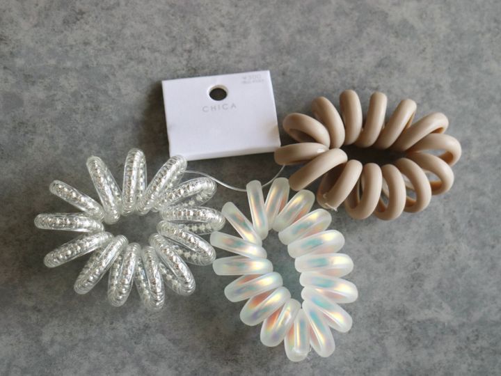 すべて同じ大きさですが色合いが異なる3種類のセットなので、気分に合わせて使い分けられる点が良いなと思い選びました。こちらのコイルポニーをつかった簡単アレンジ方法をご紹介したいと思います。
