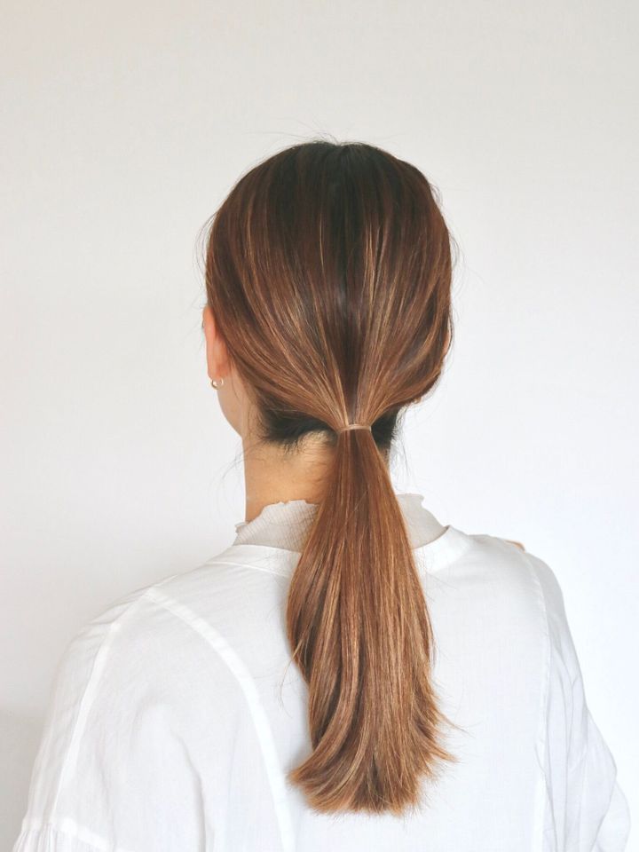 結ぶ高さは、高めでも低めでもお好きな位置でOK!ひとつ結びにします。