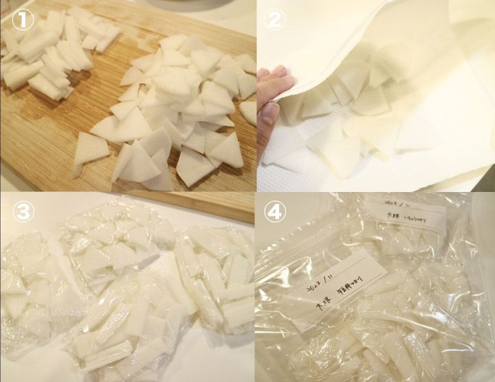 ただ、なんとなくお得と思って1本買ったものの、結局あまり使えずに、冷蔵庫をあけるとしんなりとした大根が…という経験をされたかたもいるのではないでしょうか(わたしがまさにそのひとり)。今回は、大根は好きだけど1本使い切るのは難しいというときに、無駄なく上手に消費できる冷凍テクをご紹介したいと思います!