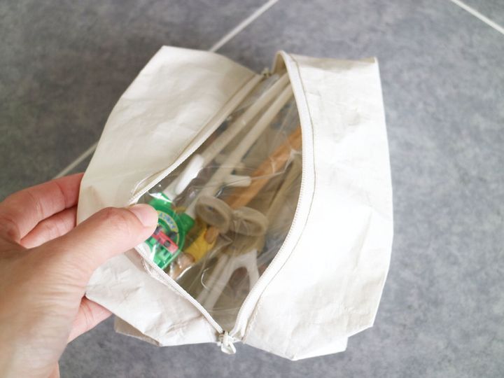 月に何度か外食へいくことがあるのですが、その際にスタイやトレーニング箸、食材を食べやすくカットするはさみなど、必ずお食事セットを持っていくのが我が家のお決まりです。ビニール袋に入れているだけでは、お箸が突き出てしまったりかばんの中で見失ったりとすこし不安ですが、これらをひとまとめしてケースに入れておけばサッと取り出せてサイズ感もちょうど良くとても使いやすいのです!