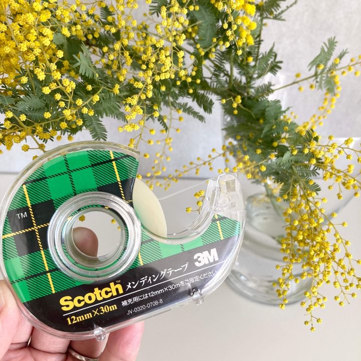 使用するアイテムはメンディングテープ!メンディングテープは本や書類の補強に使う用途で売られているもので、文具売り場や100円ショップにも売っています。メンディングテープは表面がマットでサラッとしているのが特徴で、貼っても目立ちにくくテープの粘着あとものこりにくいところがポイント。