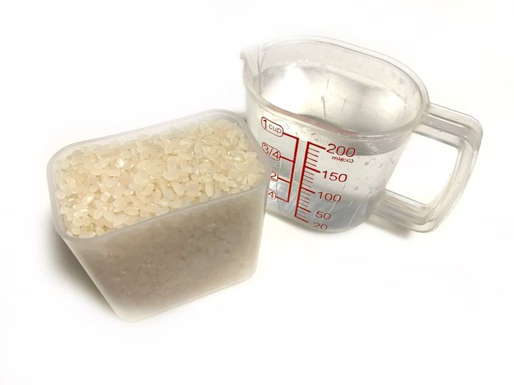 洗ったお米と水の体積が1:1.2になるようにして炊くのが基本です。