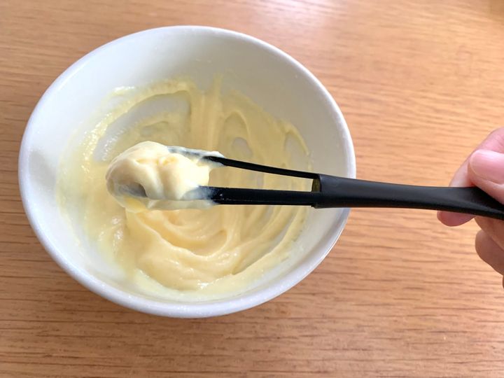 クリームの硬さは、牛乳を入れる量で加減することができ、豆乳や低脂肪乳などで作ることもできます。今回のタルトでは、フルーツが沈み込みにくくなるよう、牛乳を少なめにして「硬め」に作ることがコツです。