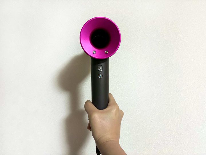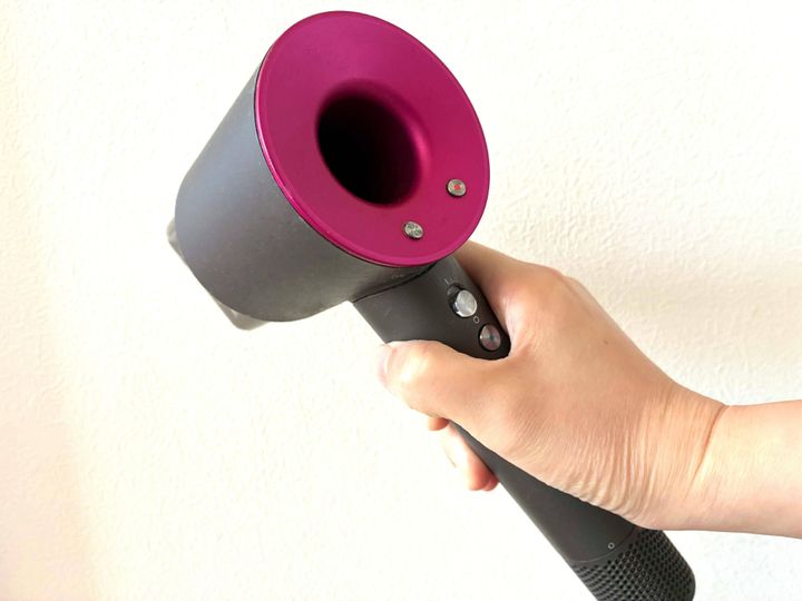 ダイソンのドライヤーを使ってみて驚くのは、とにかく「熱くない」こと。一般的なドライヤーだと、同じ場所に熱風が当たり続けて「あちっ」と驚いてしまうことがありますよね。