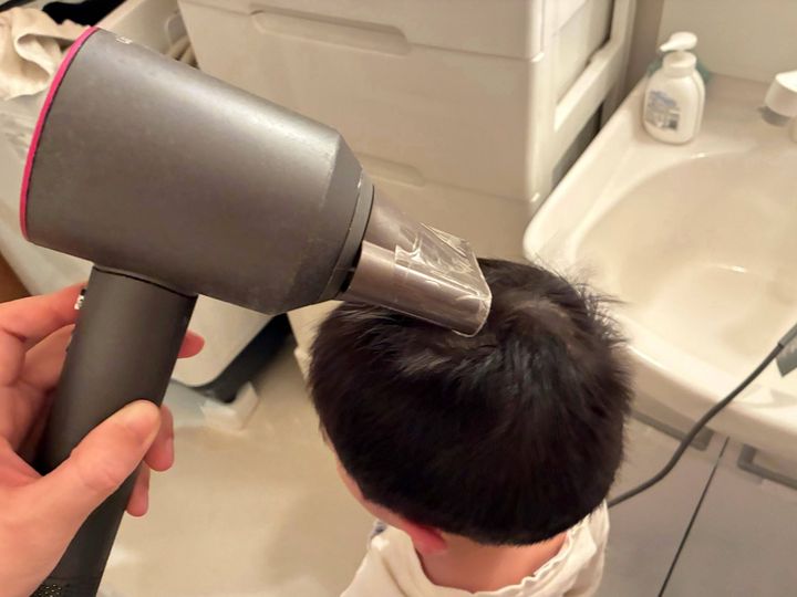 筆者の髪型はボブですが、お風呂上がりにタオルで拭いた状態から約1分でおおむね乾きます。子どもの体を拭いて、保湿して、パジャマを着せて…とお風呂上がりにはやること満載なので、これだけ早く乾かせるのは本当にありがたいです。