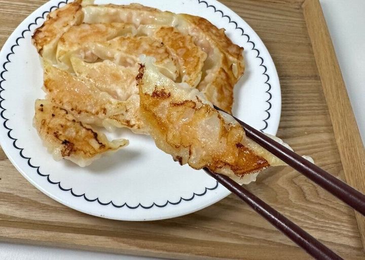 このえび餃子、皮が薄めです。なので慎重に焼かないと破けやすいです!