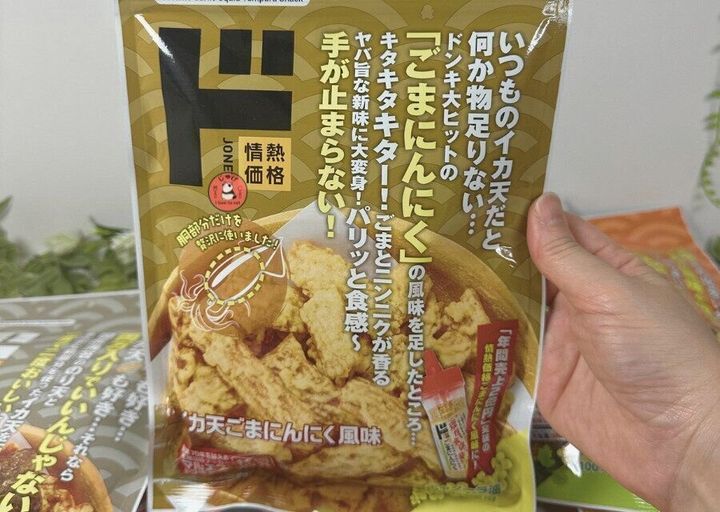 こちらは、ドンキの大ヒット商品「ごまにんにく」味のイカ天です。