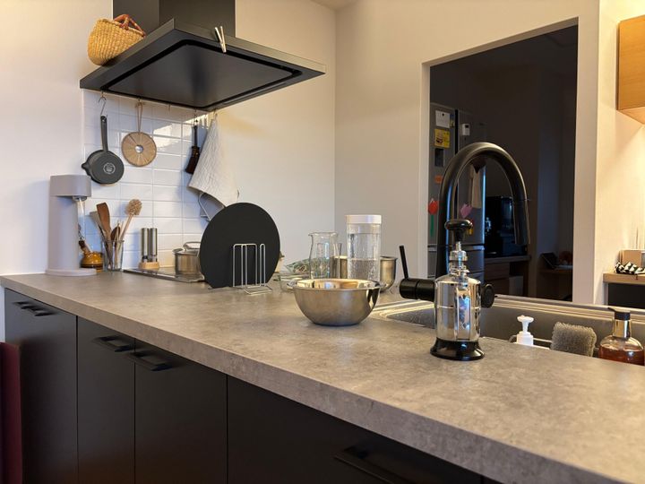 手元を隠すことができないフルオープンのキッチンになる、新居への引越しをきっかけに