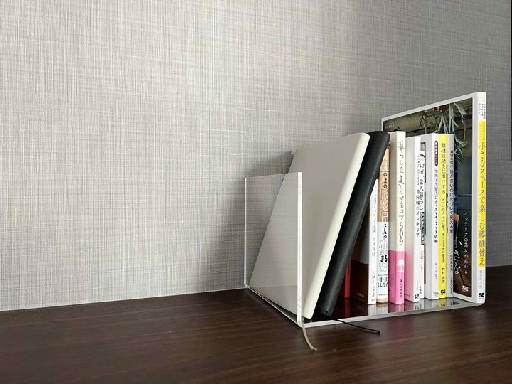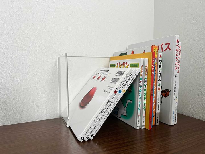 平らの面を下にして置いてみると、ブックエンドのようにして使うことができるのです。机の一角に置いてみると、小さな本棚になります。自分のお気に入りの本を並べて置いたり、子どもの絵本を並べてもいいですね。